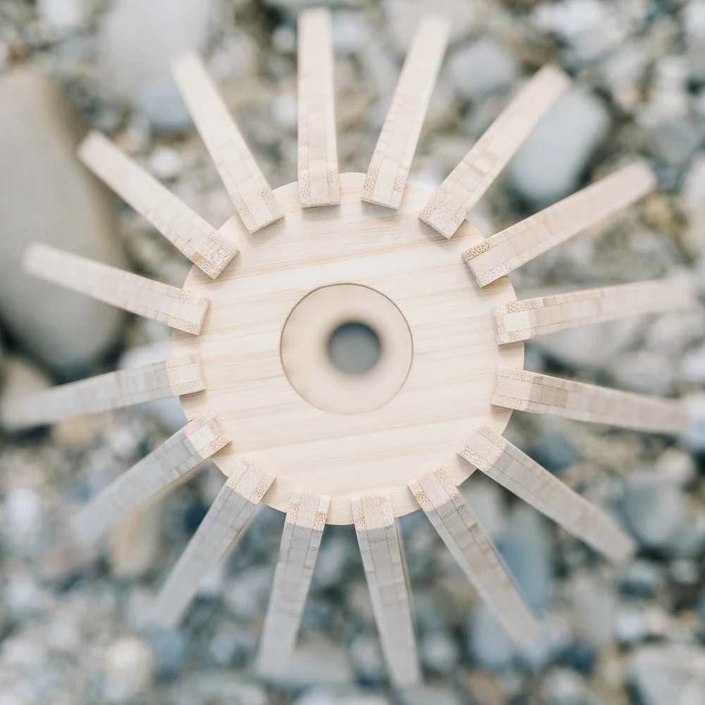 The design behind Luna began with Gus’s long-held interest in wide-base floor lighting. After exploring numerous prototypes, he found inspiration in one of nature’s simplest, most elegant shapes — a falling water droplet. This subtle influence is visible in Luna’s tapered silhouette and its precisely crafted, 24-piece array of curved bamboo uprights. Each component plays a role not only in shaping the form but also in producing the layered shadows for which Luna is known.